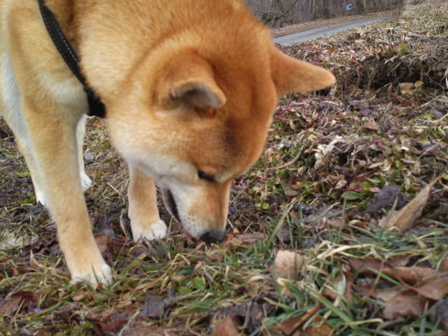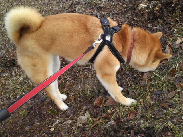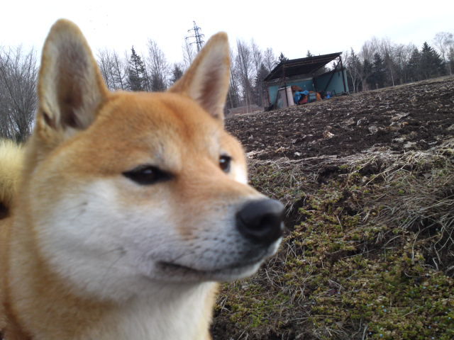 今朝は陽が出ていないせいか冬の陽気木です。ハチ君、今日も元気に草原を走り回っていました。