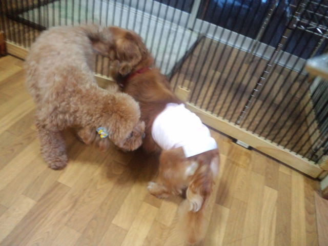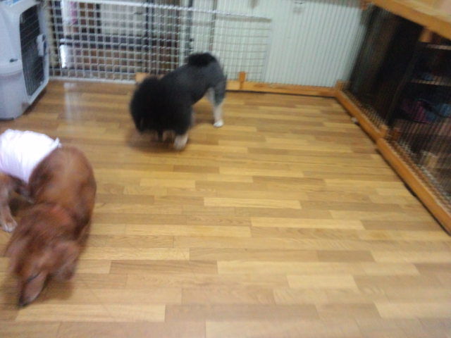 すぐにサークルから出て、他のワンコ達と仲良くしてます。