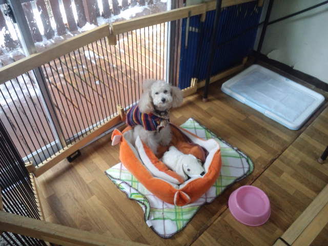 飼い主さんが居なくなってしばらく寂しがってましたが、すぐに諦めたらしく自分のクッションで大人しくしてます。