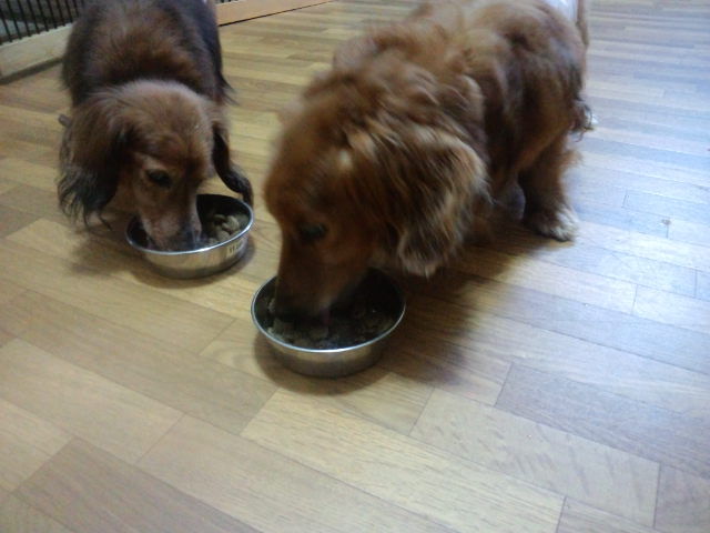 長期預かりダックスズのラブ君とチャコ君、しっかり完食しました。