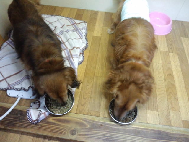 長期預かりダックスズのラブ君とチャコ君、しっかり完食しました。