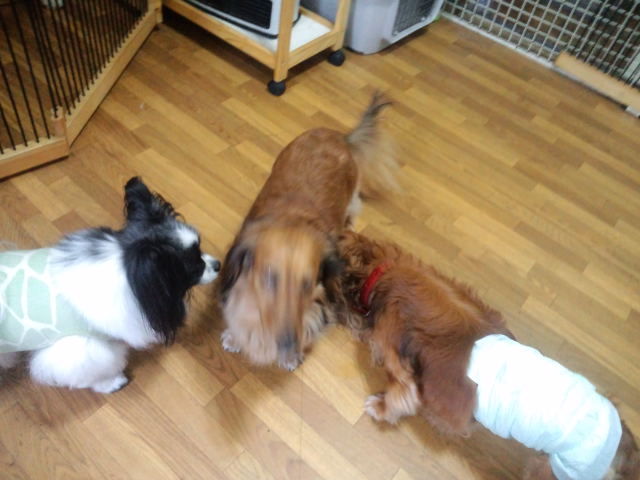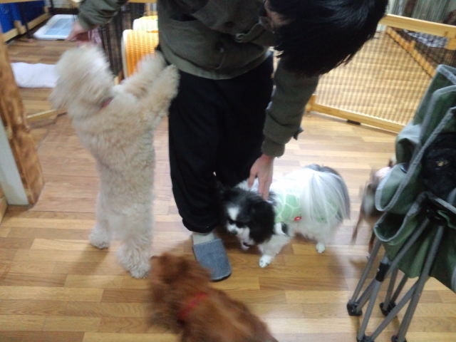 飼い主さんが居なくなっても寂しがる事無く、他のワンコ達と仲良くしてます。