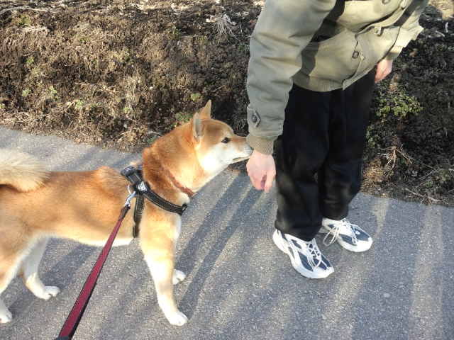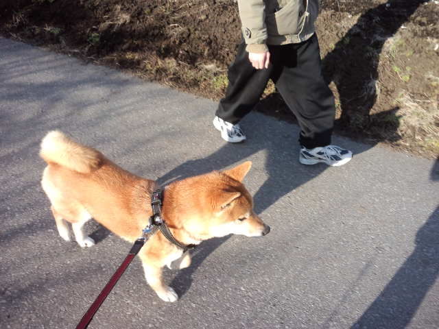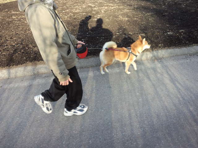 新しく働いてくれるスタッフのK君とお散歩しているハチ君です。