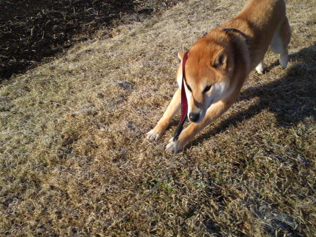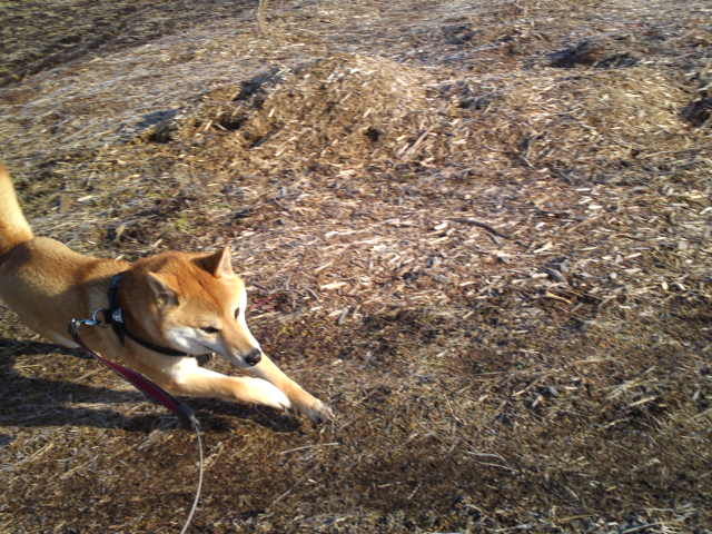 今朝は晴れ間が広がっています。ハチ君、楽しそうに走り回っていました。