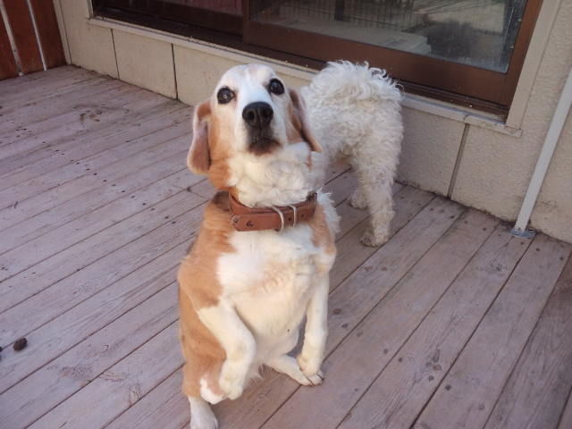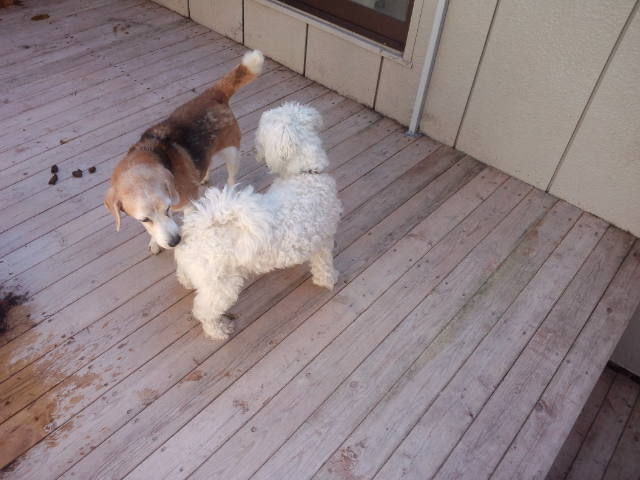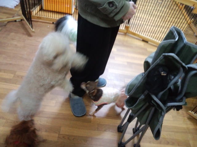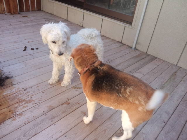 常連ビーグルのビーちゃんがチェックインしました。 早速ミルク君が遊びに誘います。
