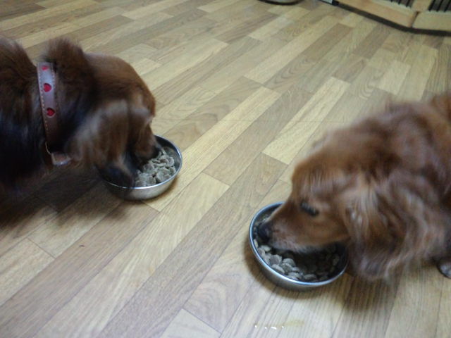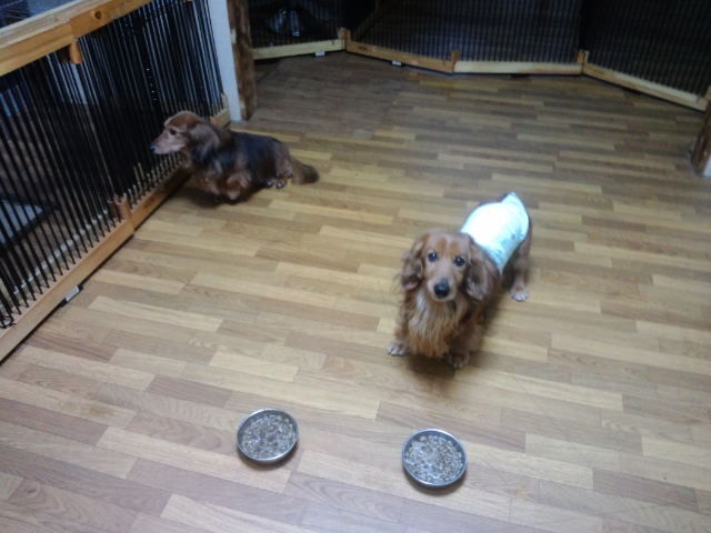 長期預かりダックスズのラブ君とチャコ君、しっかり完食しました。