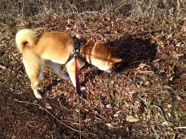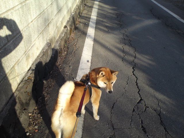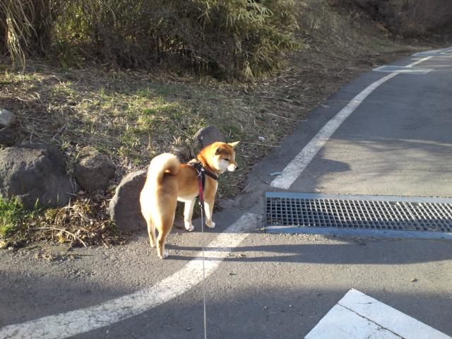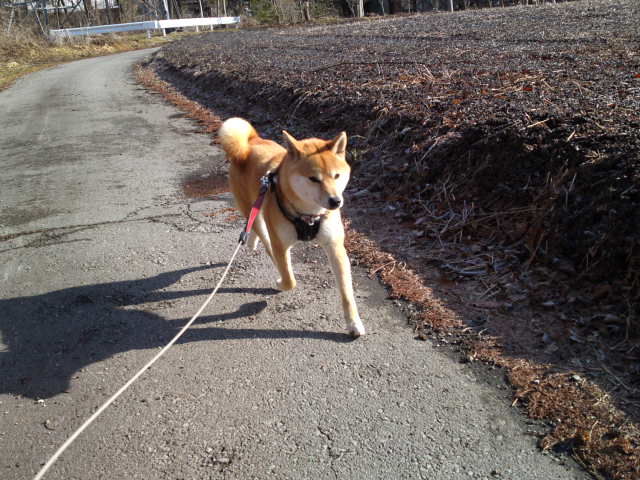 長期預かり柴ハチくん、いつもと違う道をお散歩。夕焼けが綺麗でした。