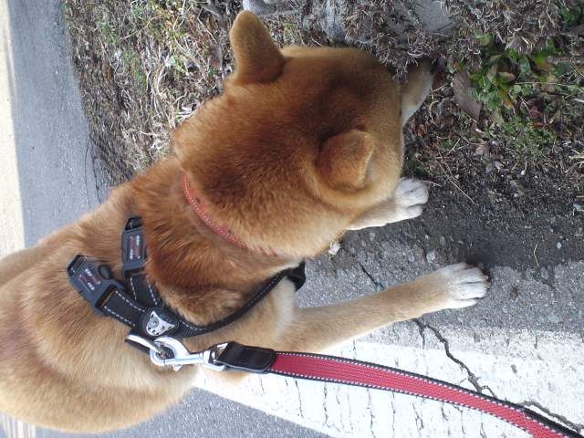 今朝は晴れていて少しずつ暖かくなって来ています。ハチ君、おにぐるみを見つけて遊んでいました。