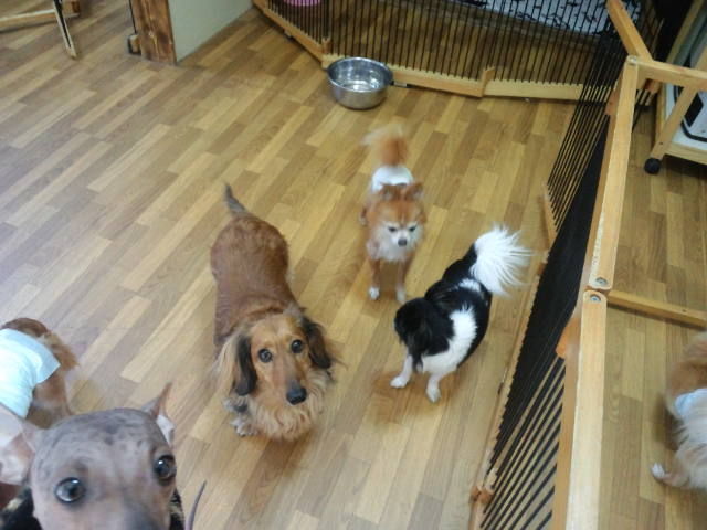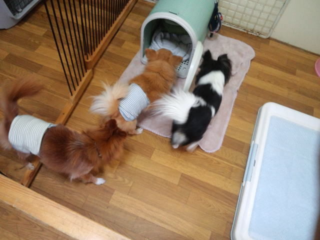 すぐにみんなと仲良くしてます。特にチワワちゃんズと仲良くしてます。
