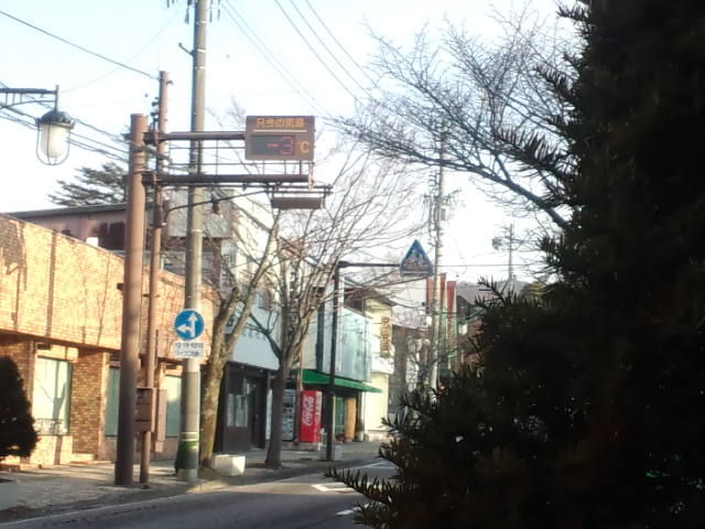 今朝の軽井沢の気温はマイナス3℃、天気は晴れてます。