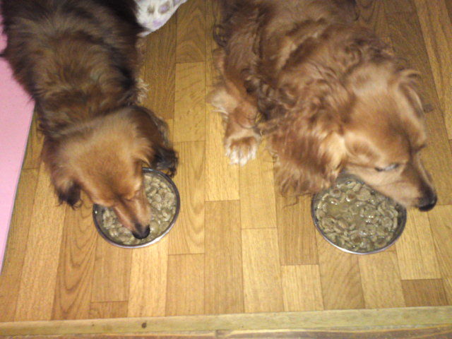 長期預かりダックスズのラブ君とチャコ君、しっかり完食しました。