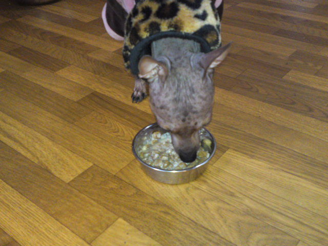 アメリカンヘアレスのキウイちゃん、ほぼ完食しました。