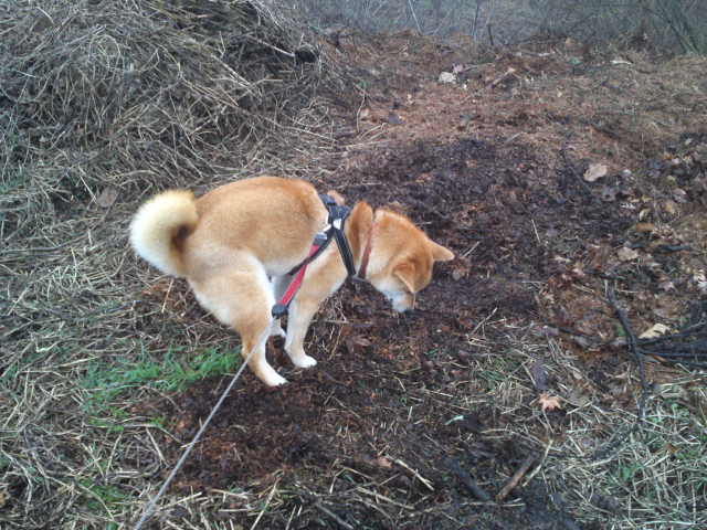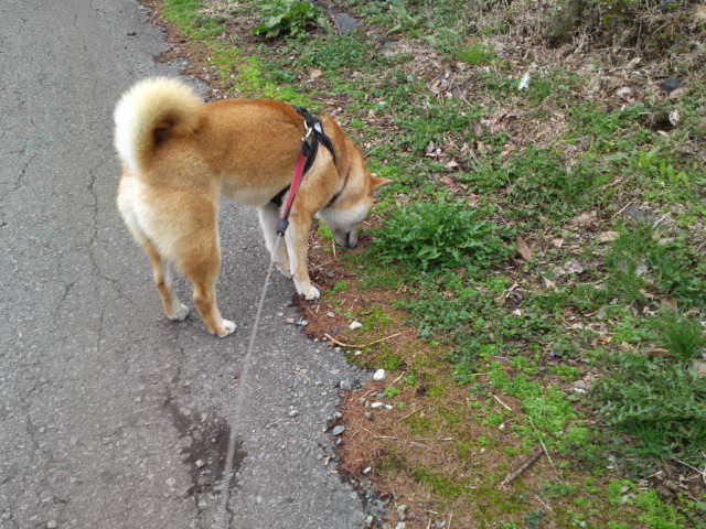 夕方は雨も上がり落ち着いた空気に包まれています。ハチ君、たくさんウンチをしてスッキリしたようです。
