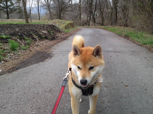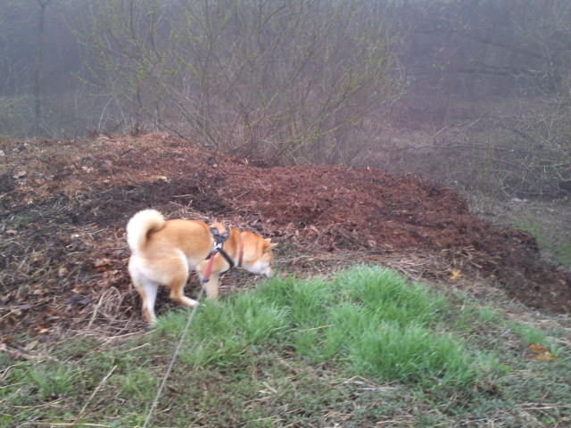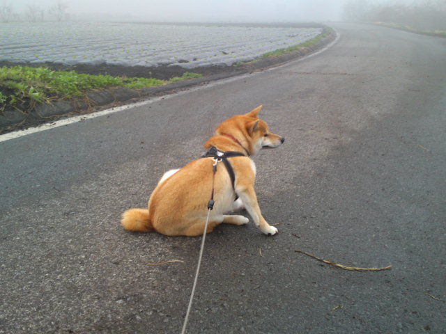 夕方は辺り一面霧に覆われています。ハチ君、ゆっくりテンポでお散歩しました。