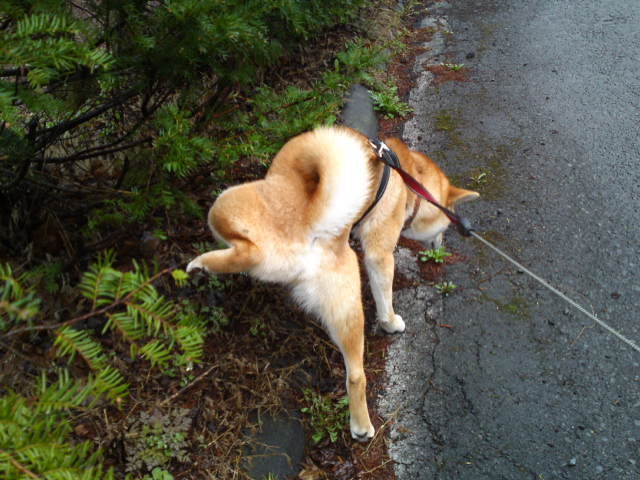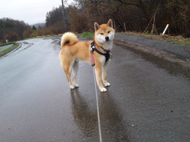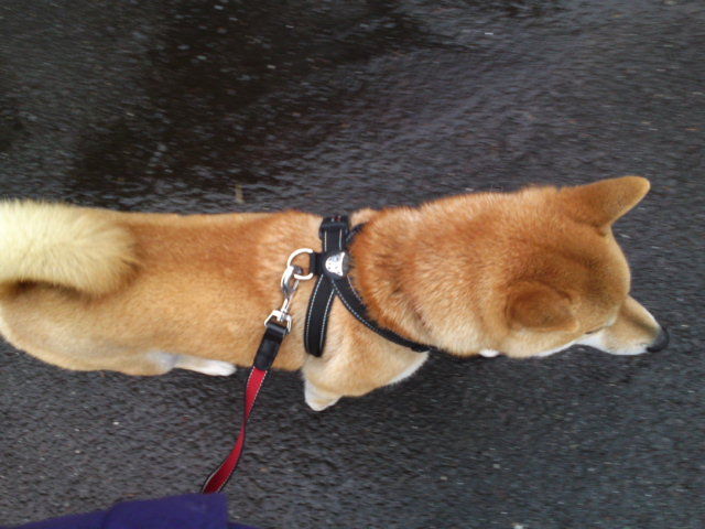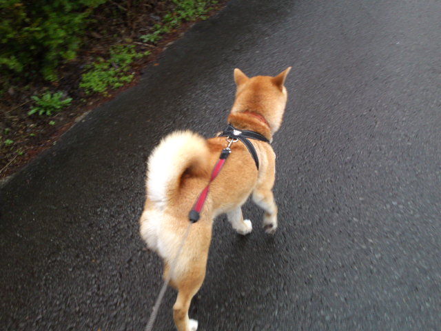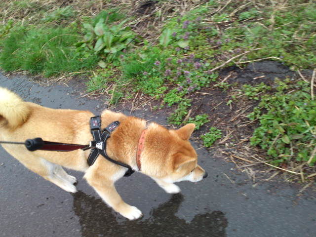 今日は朝から雨が降っています。雨が好きなハチ君、いつもと変わらず雨の中のお散歩を楽しんでいました。