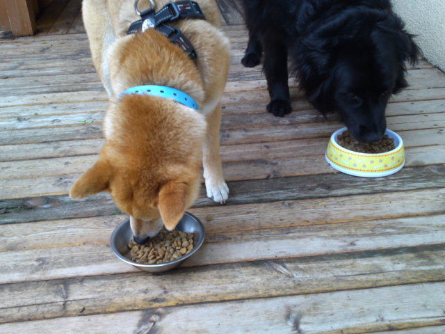 長期預かり柴ハチ君は里帰りしてます。 生涯預かりダックスズのラブ君とチャコ君、新店舗に来てもしっかり完食しました。