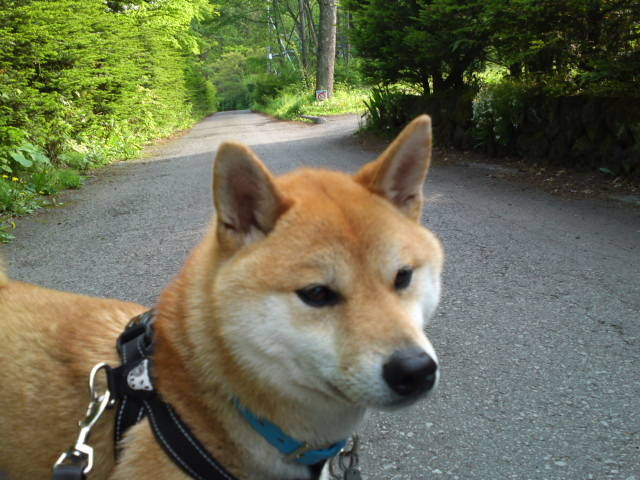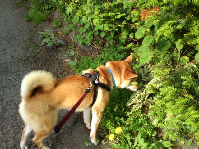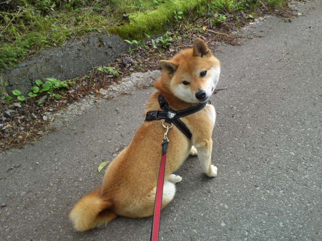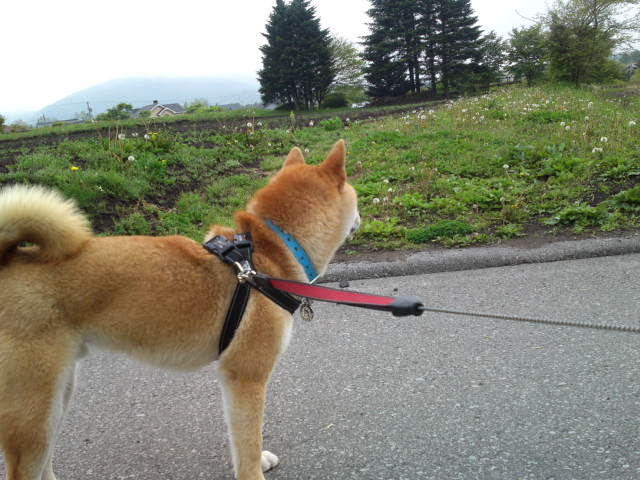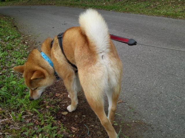 お日様は厚い雲に隠れてしまいどんより曇っています。ハチ君、いつも通りテンポよくお散歩しています。