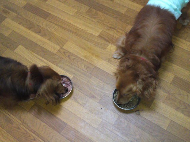 生涯預かりダックスズのラブ君とチャコ君、しっかり完食しました。