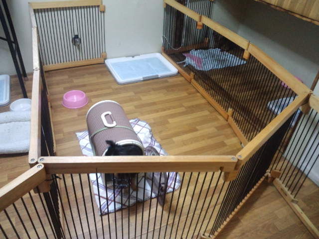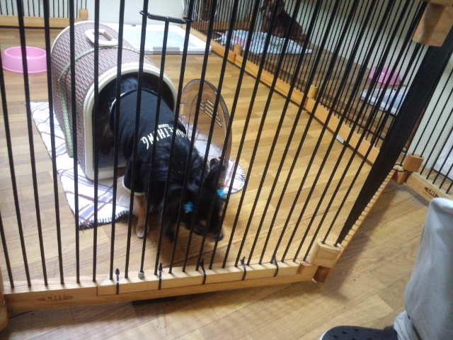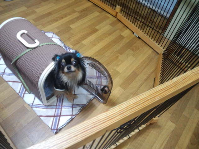 ハウスから恐る恐る顔を出したモカ君です。しばらくはそっとしておきます。