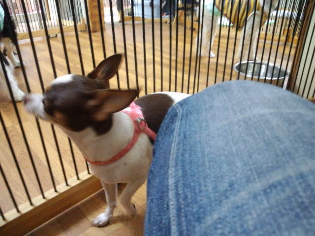 店内の匂いチェックをしてから他のワンコ達と仲良くしてます。