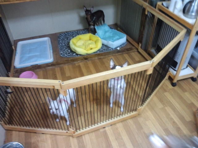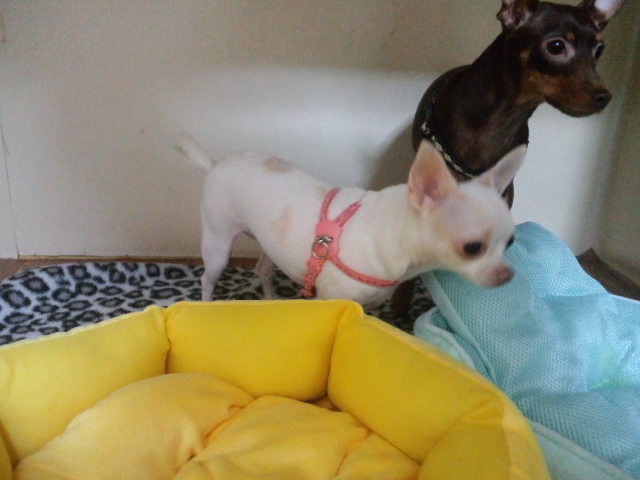 チワワのたまちゃんとくぅちゃん、ミニピンのジャムちゃんがチェックインしました。