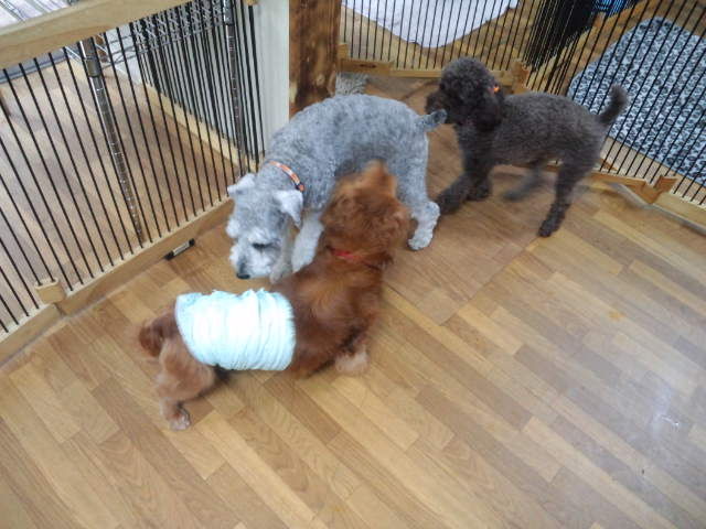 すぐにサークルから出て他のワンコ達とご挨拶してます。店長にも甘えてくれてます。