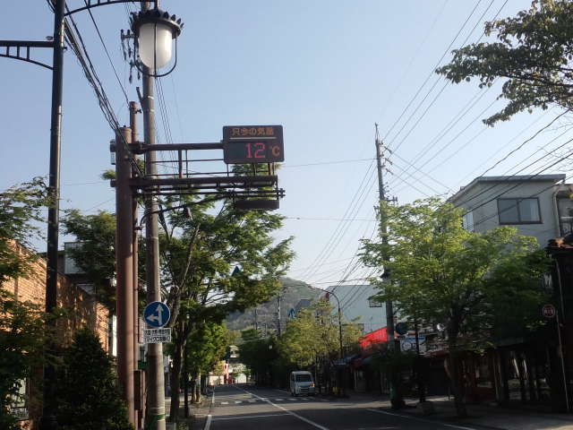 今朝の軽井沢の気温は12℃、天気は快晴です。