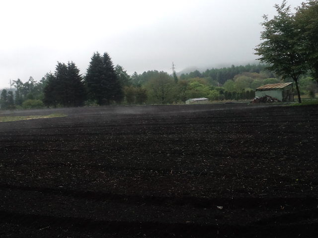 雨も上がり気温が上がってきてます。畑からは湯気が立ってます。