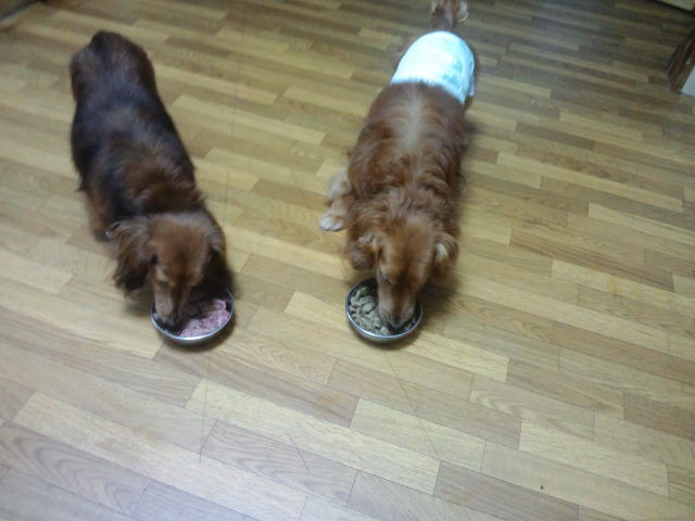 生涯預かりダックスズのラブ君とチャコ君、しっかり完食しました。