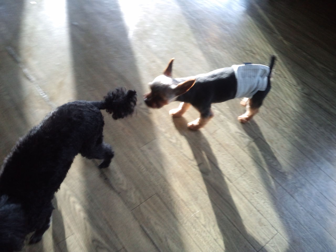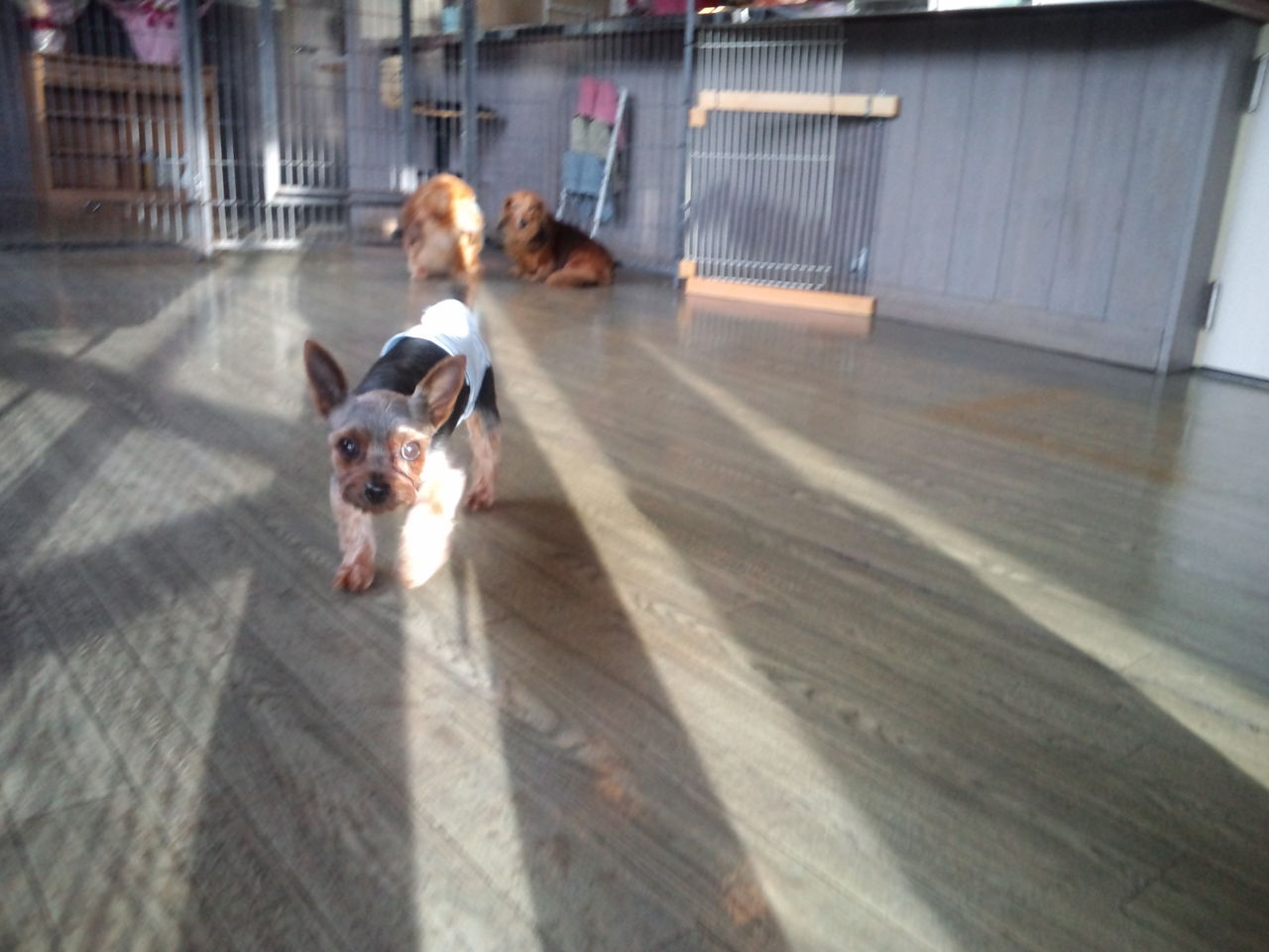 ヨーキーのコロン君がチェックインしました。犬は?との事でしたが、少しずつ他のワンコ達にも馴れた様子です。