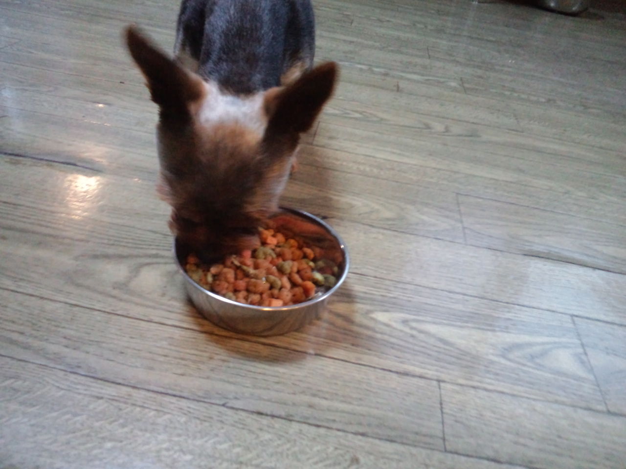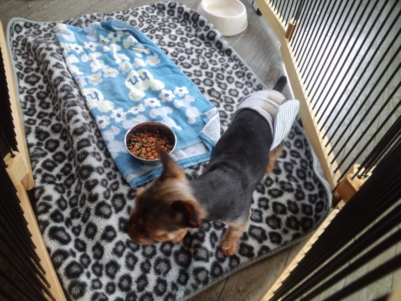 ヨーキーコロン君、朝ご飯はあの後半分くらい食べました。