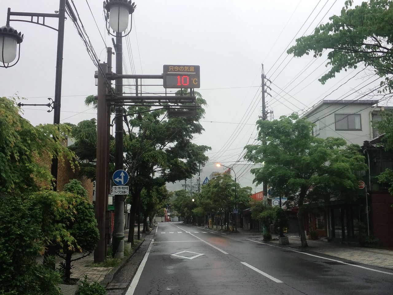 今朝の軽井沢の気温は10℃、天気は霧雨です。