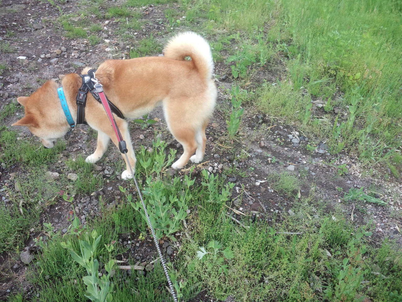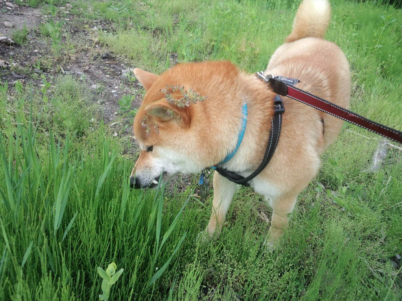 今日も大好きな草の匂いを嗅ぐハチ君です。