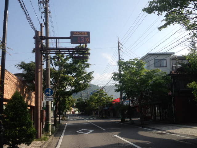 今朝の軽井沢の気温は13℃、天気は気持ち良く晴れてます。