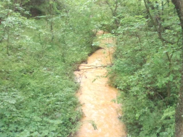 ダディー西軽井沢の裏には川が流れてます。清流ならば良いのですが、鉄分が多い水質で濁った色をしています。、 その川を渡って探検してきました。