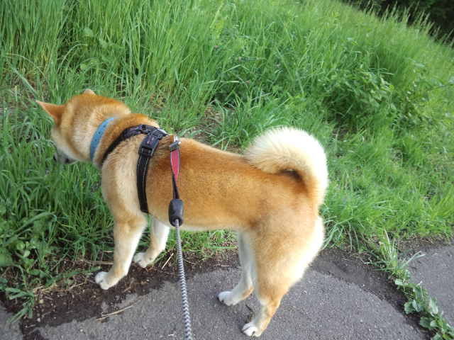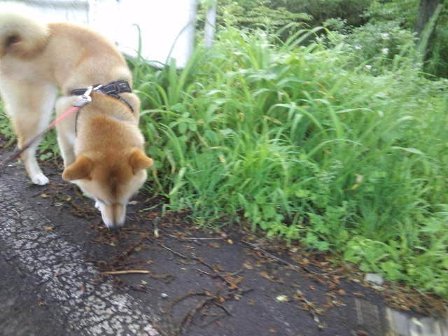 だんだんと草が伸びてきた軽井沢ですが、柴ハチ君はブタ草アレルギーなんです。あんまり草には近寄らせたくはないんですが、匂い嗅ぎに夢中なハチ君は草むらが大好きなんですよね~…。