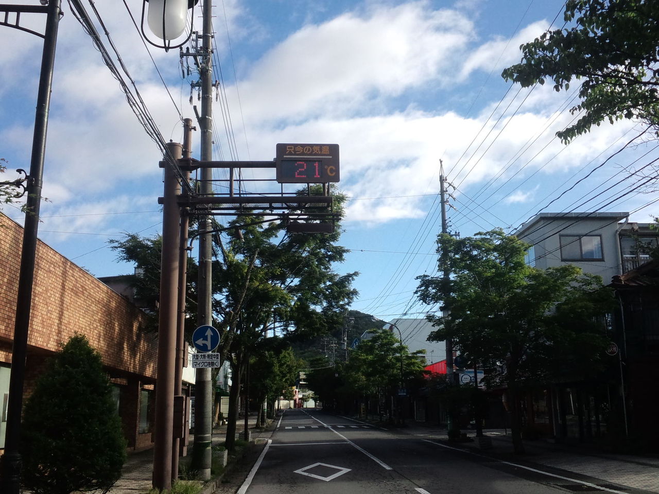 今朝の軽井沢の気温は21℃、爽やかな朝です。天気は台風一過で気持ちよい青空です。