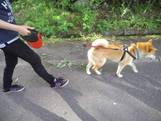 夕方は職場体験中学生のKちゃんと一緒にお散歩しました。 心なしかテンション高めのハチ君、グイグイと引っ張ってKちゃんをバテさせてました。