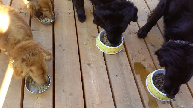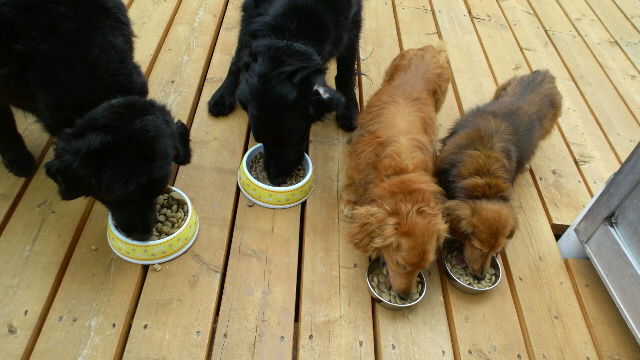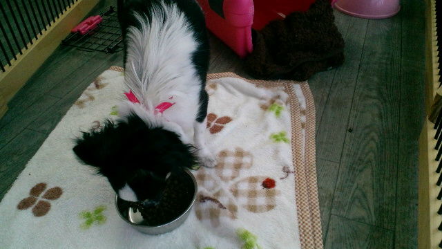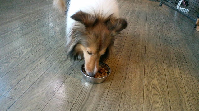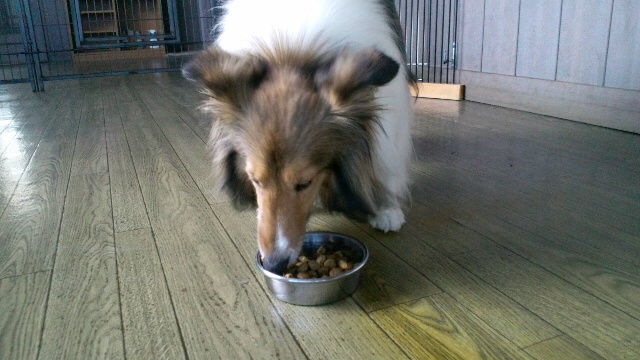 長期預かり柴ハチ君、口を付けません。 生涯預かりダックスズのラブ君とチャコ君、しっかり完食しました。