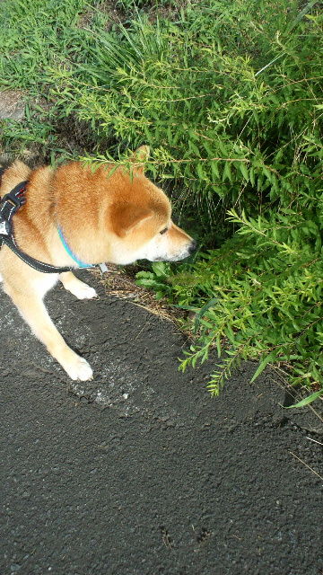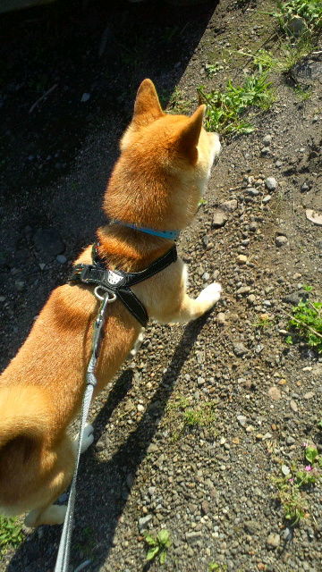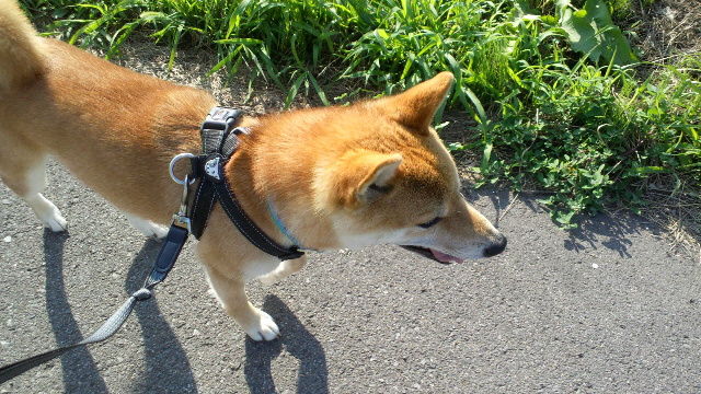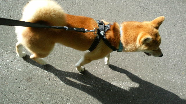 今朝のハチちゃんは元気ですが、またまた足の運びが悪いです。 朝から日差しが強かったのですが、なんとか頑張って歩いてくれました。