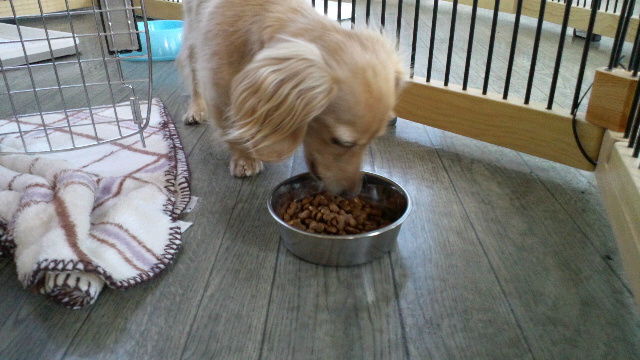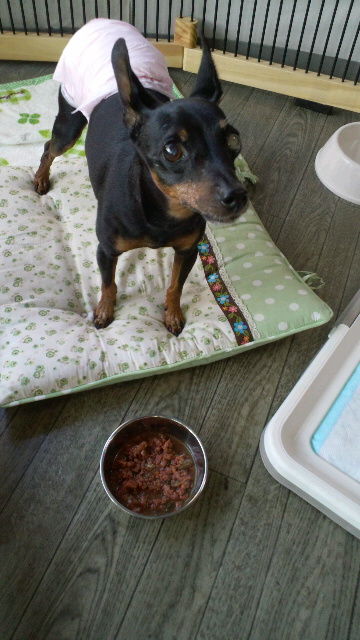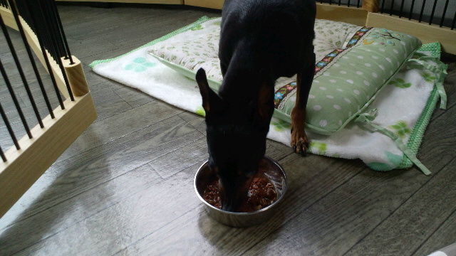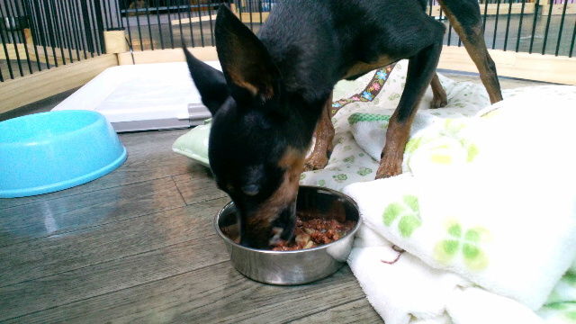 生涯預かりダックスズのラブ君、口を付けません。チャコ君はしっかり完食しました。