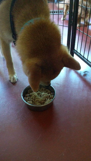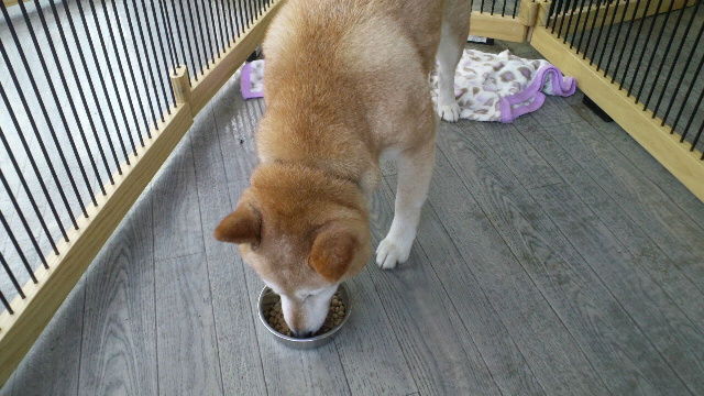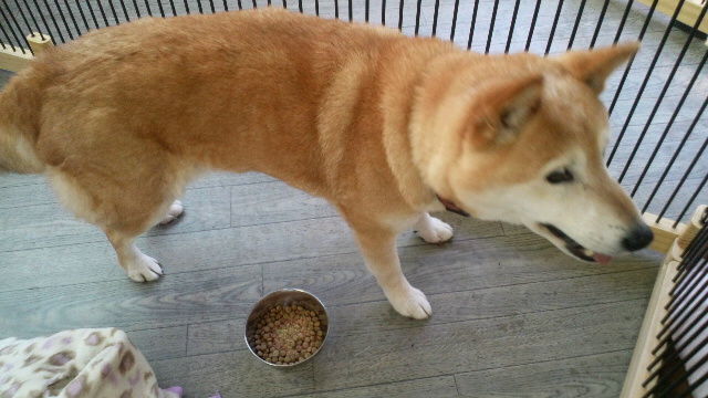 長期預かり柴ハチ君、少し口を付けただけです。おやつは食べます。