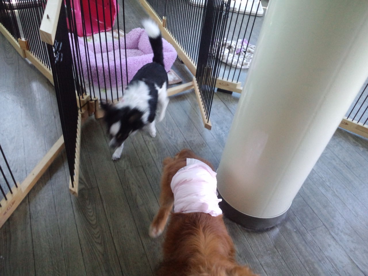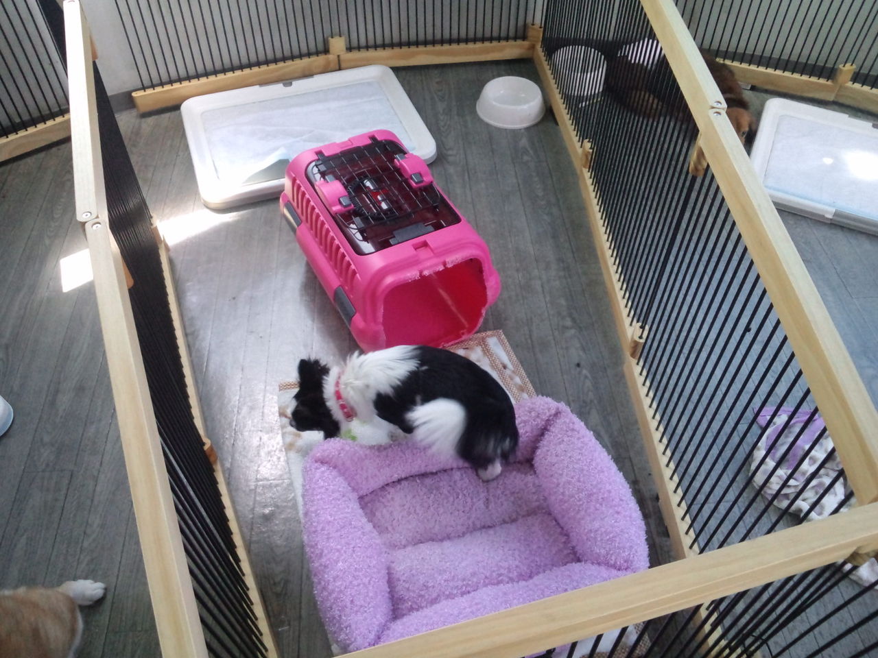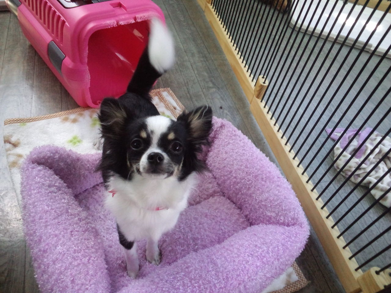 チワワのまめこちゃんがチェックインしました。まめこちゃんはまだ8ヶ月のパピーで、遊びたい盛りみたいです。すぐにサークルから出て来て走り回ってます。