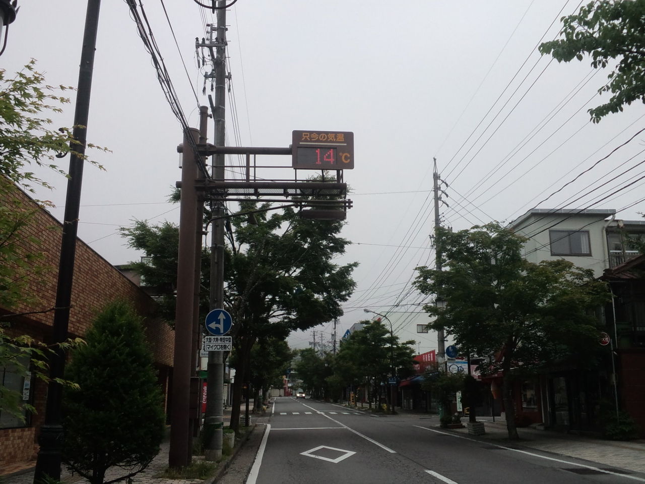 今朝の軽井沢の気温は11℃、天気は雨が降ってきました。