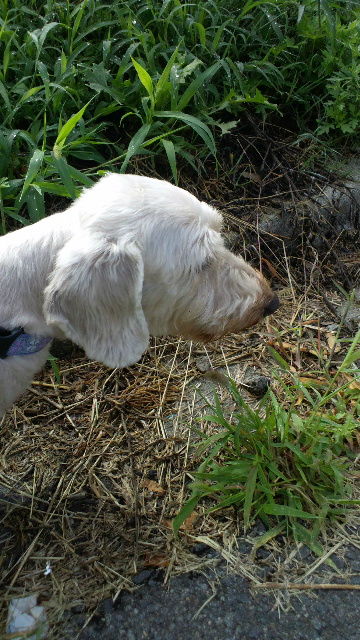 今朝の軽井沢は涼しいなー 草をクンクン うんちもたくさ出ました。