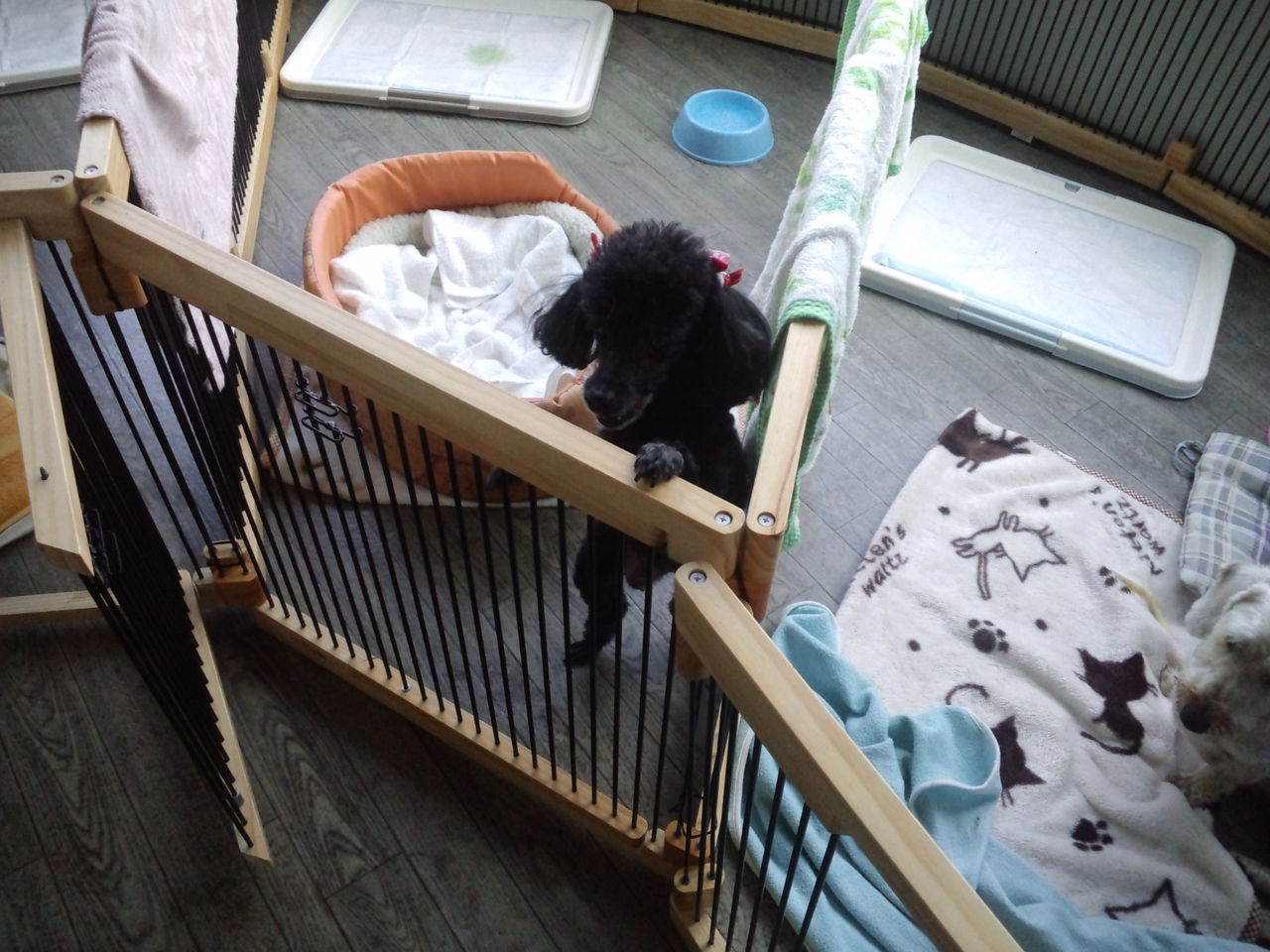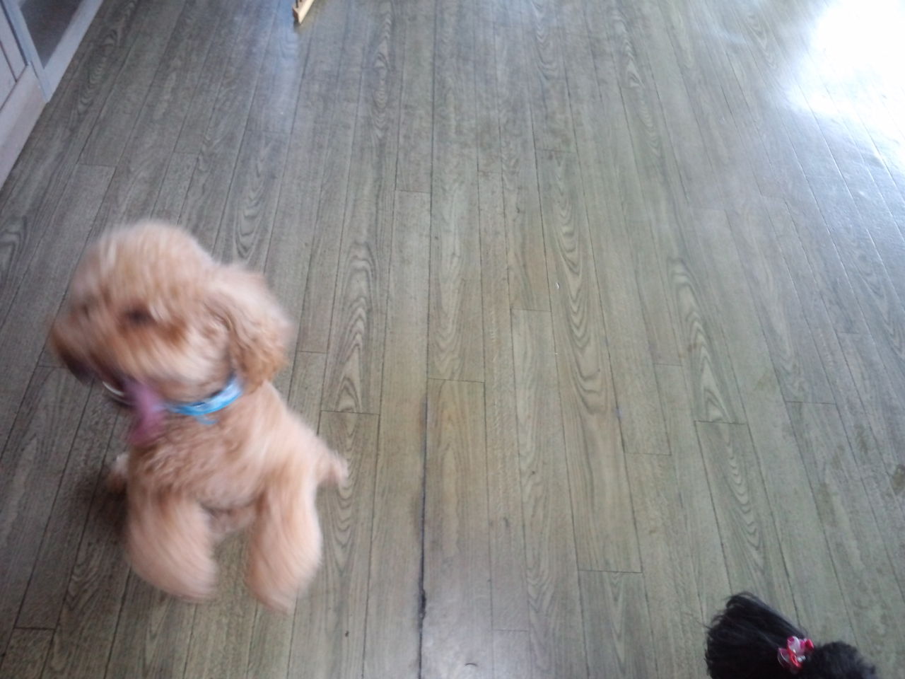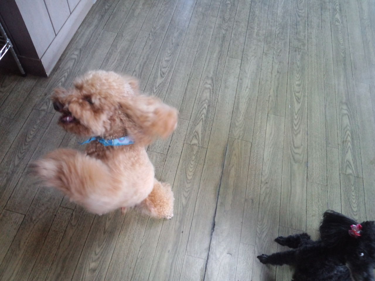 3月にも来てくれたトイプークー君がチェックインしました。 サークルから飛び出して来て置いていかれた不満を店長にぶつけてます…。