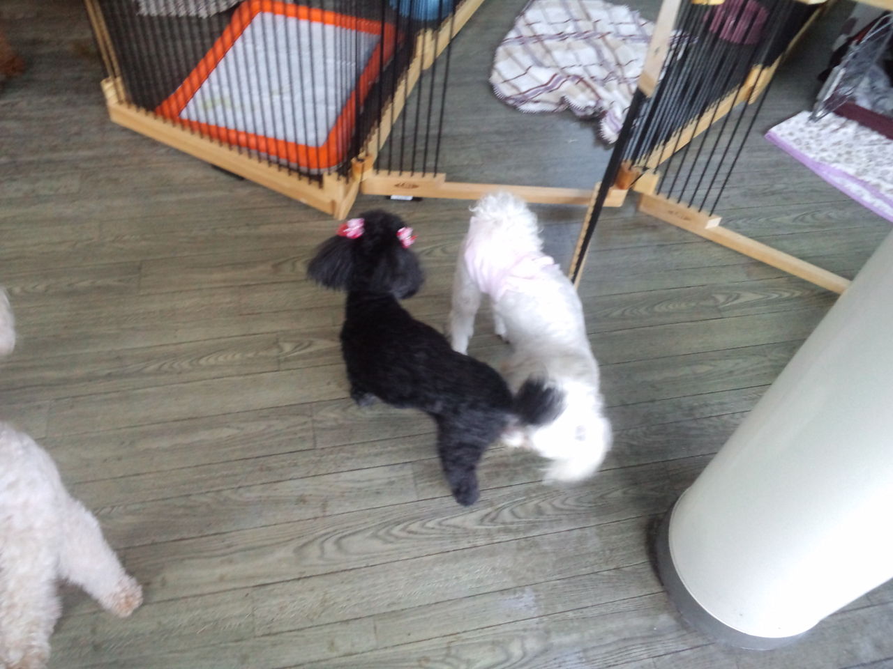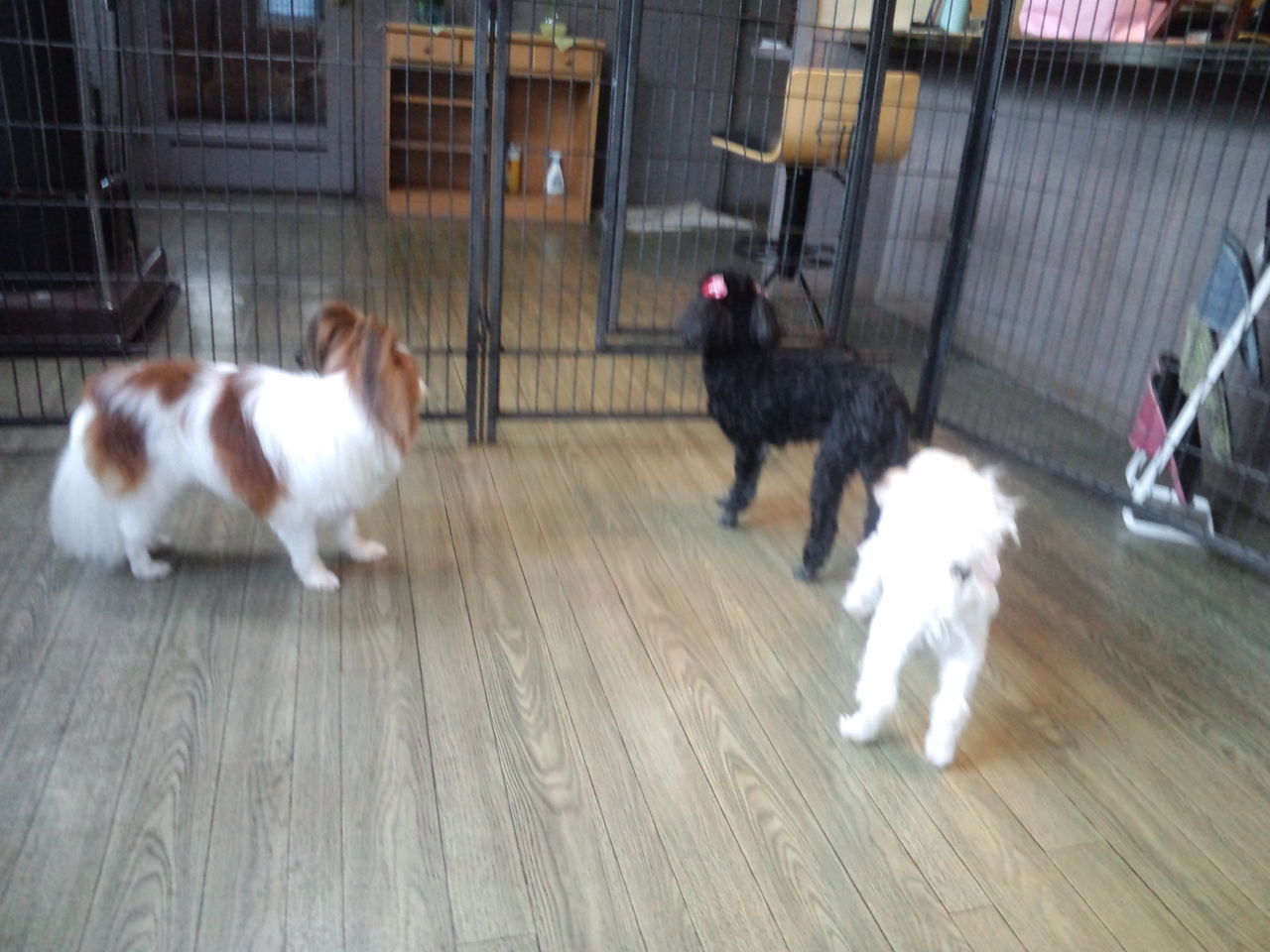 すぐにサークルから出てワンコ達と仲良くしてます。