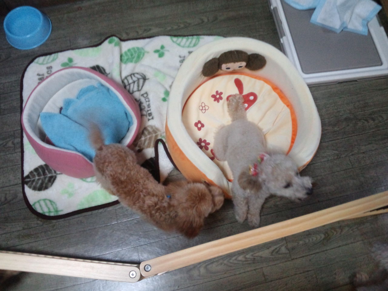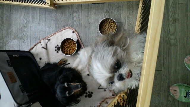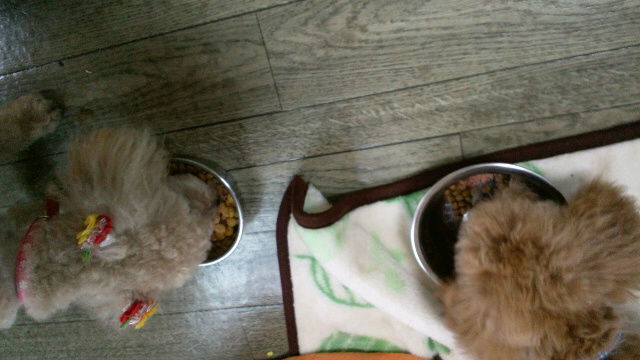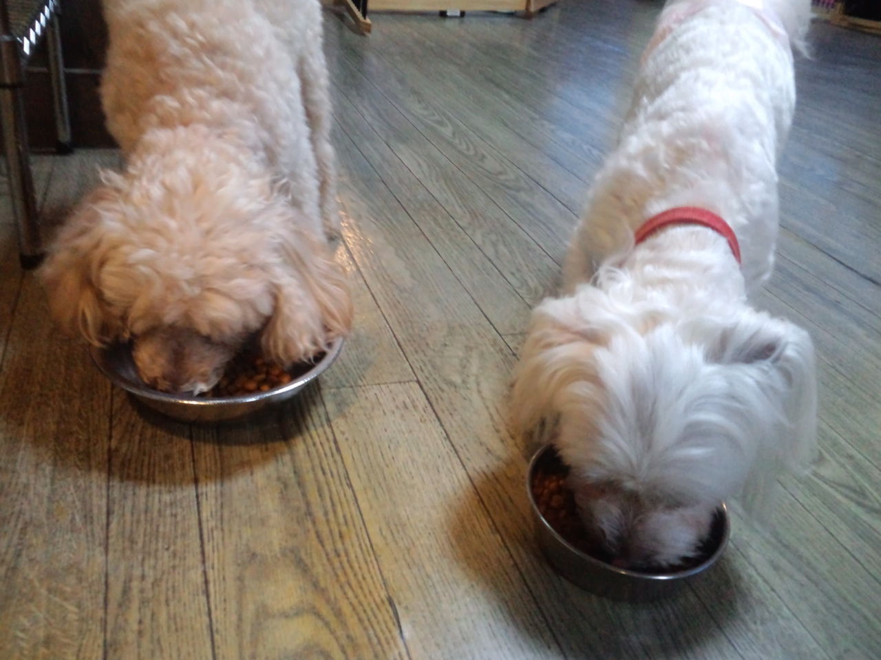 長期預かりトイプーベラちゃんと生涯預かりマルチーズキュー君、しっかり完食しました。