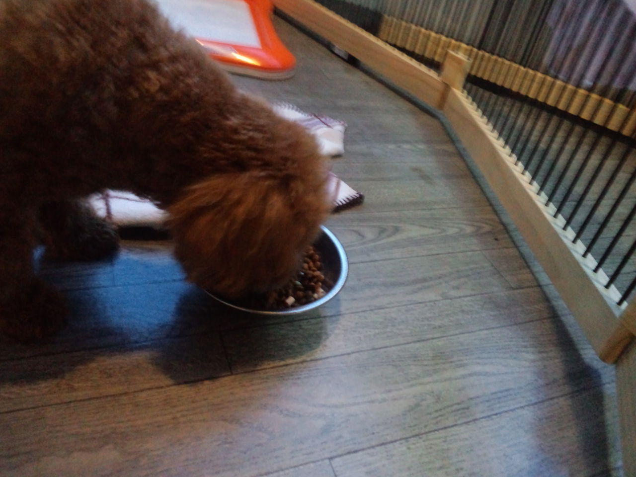トイプーチョコちゃん、晩御飯は完食してました。朝は口を付けません。