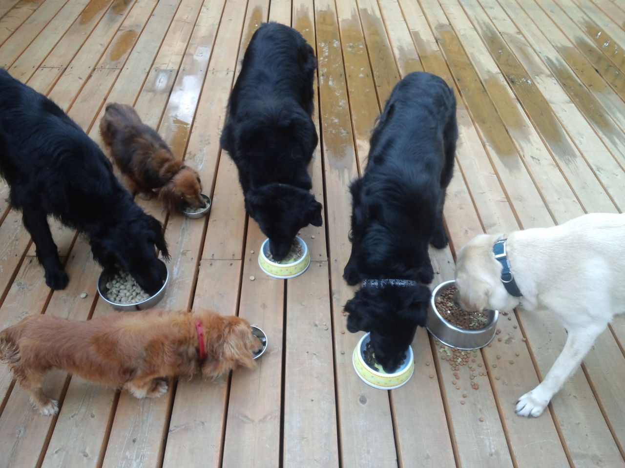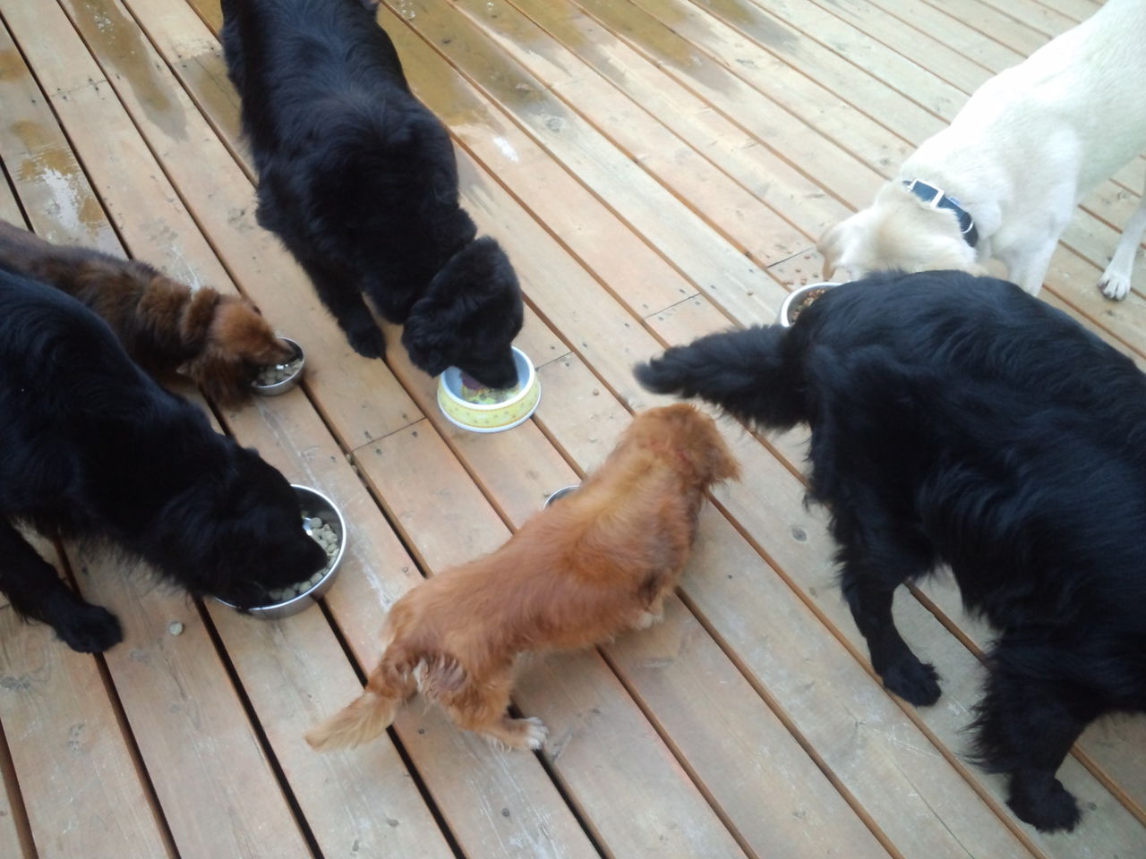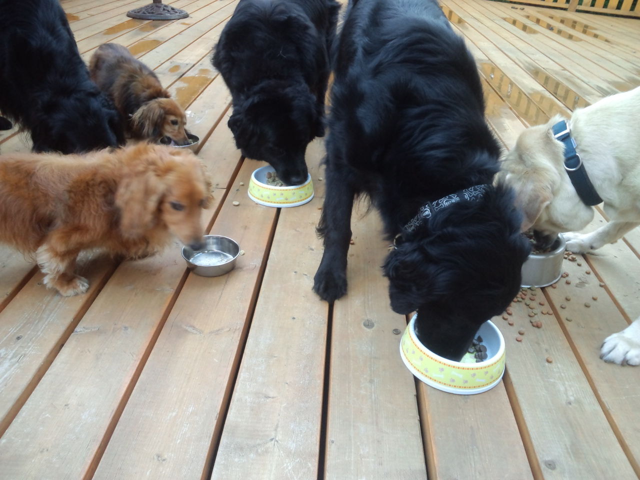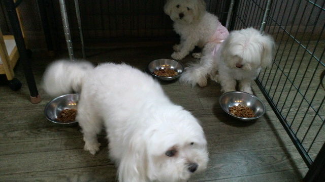 トイプーミッキー君、口を付けません。 長期預かり柴ハチ君、半分食べました。 フラットケイ君とジョン君、しっかり完食しました。